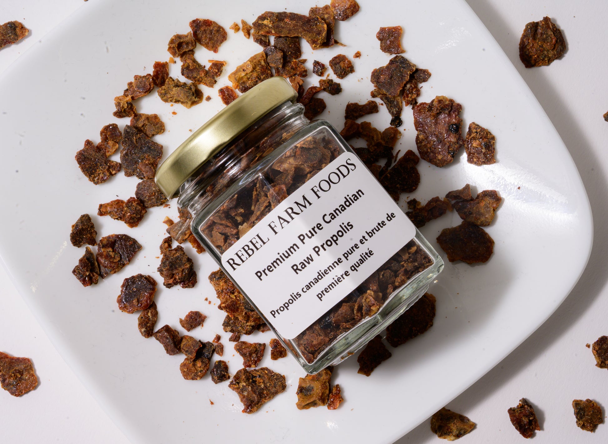 Gathered from various trees by the bee's, the resin has been used to make tinctures, salves, creams, sprays and dressings for a very long time. Treat your colds, cuts, wounds, burns or toothaches with this magical substance and stay away from harmful pharmaceuticals